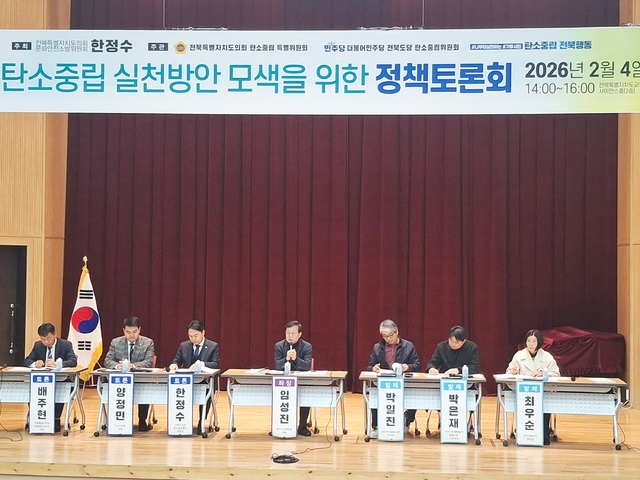 전북특별자치도의회 문화안전소방위원회와 더불어민주당 전북도당 탄소중립위원회, 탄소중립전북행동이 공동주관한 이날 토론회는 전북자치도의 탄소중립 실천 및 에너지 전환 역할과 정책 방향을 논의하고 현장의 목소리를 청취해 지역 중심 탄소중립 실천 방안을 구체화하고자 마련됐다.