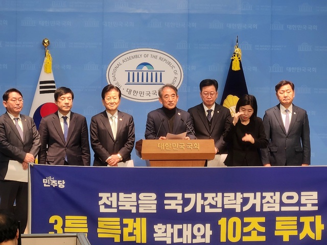 이날 회견에는 김관영 전북특별자치도지사, 윤준병 더불어민주당 전북특별자치도당위원장, 정동영, 이성윤, 안호영, 박희승 국회의원이 참석했다.