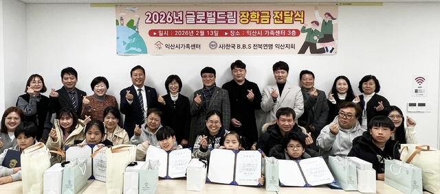 한국 BBS 익산지회(지회장 김이남)가 지난 13일 익산시가족센터에서 글로벌드림 장학금 전달식을 열고 지역 내 다문화가정 청소년들의 건강한 성장을 응원했다.