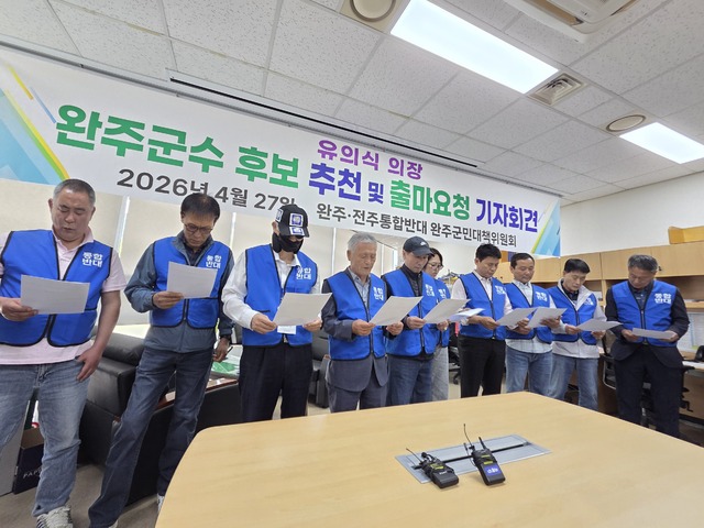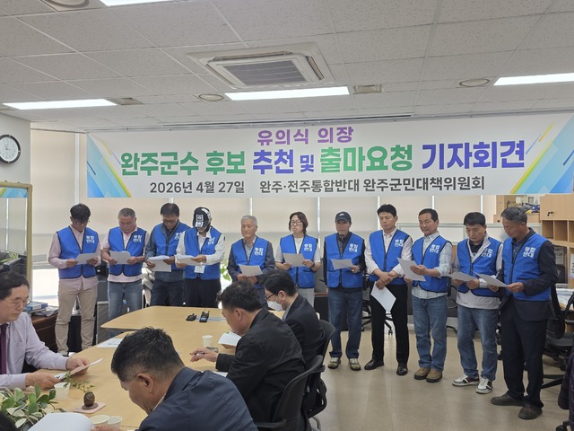 회견문에는 “지금 완주에는 깨끗함과 용기, 완주만 생각하는 지도자가 필요하다”며 “유 의장이 완주를 지켜달라는 군민의 절박한 호소에 응답해 달라”는 간곡한 요청이 담겼다. 대책위는 회견 후 유 의장을 찾아 출마요청서를 전달했다.
