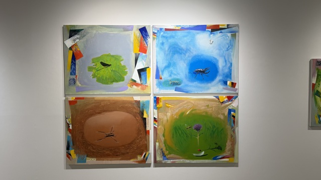 전시장을 채운 그의 화폭에서 가장 눈에 띄는 변화는 완연한 ‘주조색’의 변모였다. 전반기 작품이 강렬한 생명력을 뿜어내는 ‘오방색의 시대’였다면, 후반기인 최근작들은 깊은 사유의 고요함이 배어있는 ‘청색의 시대’를 보여준다. 하늘과 바다를 닮은 은은한 청색조의 배경 위로 불상, 삼족오, 말, 나비 등 이질적인 오브제들이 배치되어 몽환적이고도 시적인 분위기를 자아낸다.