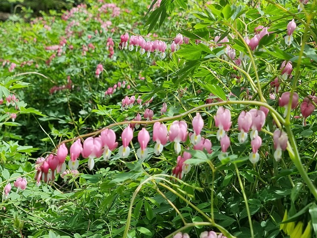 하트 모양의 분홍색 꽃잎이 특징인 금낭화는 희소성과 관상 가치가 높은 야생화로, 대아수목원의 금낭화 자생지는 전국 최대 수준으로 평가받는다. 현재 수목원 산책로를 따라 펼쳐진 분홍빛 꽃망울은 상춘객들의 발길을 붙잡으며 장관을 이루고 있다.