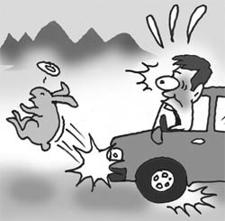 도로를 건너다 차량에 치여죽는 ‘로드킬(Road­Kill)’은 의도적인 폭력은 아닐지라도 야생동물의 생존을 위협하기는 마찬가지다.인간의 편의를 위해 만든 도로가 야생동물에게는 죽음을 무릅쓰고 건너야하는 길이 됐다.로드킬이 야생동물에게는 또 다른 천적으로 기능하고 있는 것이다.