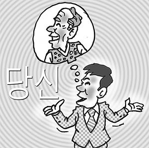 ‘당신’이란 단어는 2인칭으로 자주 쓰이지만 3인칭 극존칭으로도 쓰인다. 그런데 드물게 쓰이는 ‘당신’이 마치 2인칭 평칭인 것으로 인식되면서 그 스임이 현격하게 줄어 들었다. 듣는 사람이 3인칭 극존칭의 용법을 모르면 오해하기 십상이라는 점이 부담으로 작용한 것이다. 할아버지에게 손자가 자기 아버지를 존재해야 하는지도 쉽지 않은 문제다. 듣는 할아버지를 생각한다면 낮춰서 표현해야 하지만 말하는 손자 입장에서는 아버지도 손윗사람이기 때문에 무작정 낮추는 것도 어렵기 때문이다.