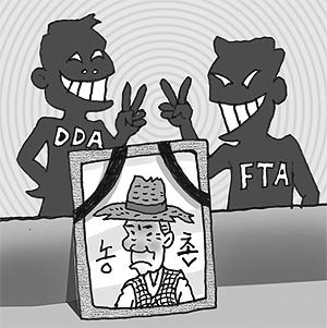 이미 예상했던대로 한.미 양국은 이달 초 자유무역협정 협상 개시를 공식 선언했다. 아무리 수판알을 굴려봐도 한.미 FTA는 우리 농촌에 저승사자 노릇을 할 것이 뻔하다. 미국 무역대표부(USTR)가 의회로부터 위임받은 무역촉진권(TPA)의 시한이 내년 6월 말이라 협상기간이 너무 촉박한 것도 신경이 쓰인다. 일정에 쫓겨 자칫 정부가 주도권을 뺏기는 날이면 결과는 더욱 참혹해질 수도 있기 때문이다