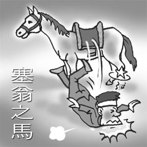 그래서 정치지망생에게는 중국 고사(古事)의 새옹지마(塞翁之馬)라는 네글자의 의미를 새겨보는것도 중요하리라. 중국 북쪽 국경지방에 점(占)을 잘치는 한 노인이 살았는데 하루는 그의 말이 북쪽으로 달아났다. 사람들이 그를 위로했는데 그는 복(福)이 올지도 모른다고 태연했다. 몇 달뒤에는 그의 말이 튼튼한 말을 여럿 거느리고 돌아왔다.