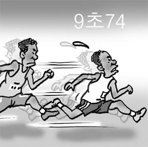 동물계에서 인간은 한참 뒤처진다.고양잇과 치타는 시속 100㎞를 자랑한다.100M를 3초60에 주파한다.볼트보다 3배 가까이 빠른 셈이다.경주마 역시 평균 시속이 60∼70㎞에 이른다.볼트든 파월이든 인간탄환들은 명함도 못내밀 처지다.하지만 세계 육상계가 초스피드로 발전해 가고 있지만 한국 육상은 답보상태에 머물러 있다.서말구가 동아대 재학시절인 79년 멕시코 하계유니버시아드에서 10초34를 기록했다.이기록은 29년째 깨지지 않고 있다.대한육상경기연맹이 1억원의 포상금까지 내걸었지만 10초34의 벽은 아직도 높기만 하다.
