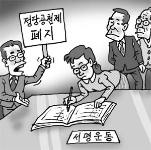 내년 지방선거를 앞두고 지방자치단체 관계자들과 시민단체들이 기초 지방자치단체장 및 기초의원에 대한 정당공천 폐지운동에 대대적으로 나섰다고 한다.