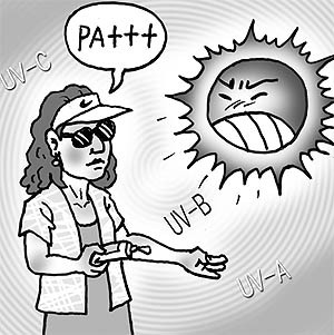 자외선을 막는 방법은 자외선 차단제를 바르는 것.실험 결과 자외선 차단지수가 높은 제품을 지속적으로 덧 발라주는 것이 효과적이다.골프장에 나가거나 밖에 나갈 때는 30분전에 차단제를 바르는게 좋다.미국식품의약국(FDA)는 권장 자외선 차단제 사용량을 ㎠당 2㎎으로 보고 있다.선글라스를 고를 때는 색의 농도보다 자외선 차단(uv 코팅)이 얼마나 확실하게 이뤄지는가를 확인할 필요가 있다.여름에는 자외선을 차단하는 것이 눈과 피부 건강을 지키는 것이다.
