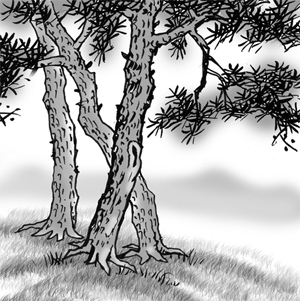 그래서 그런지 유럽의 화가들이 그린 작품속의 나무들이 세모꼴이거나 원추형 또는 대칭형이어서 기하학적 질서를 느끼게 한다. 우리가 볼때는 너무 인공적이라는 느낌을 주기도 하지만 말이다. 우리 한국의 소나무는 가급적 많이 틀어져 있거나 굽어져 있는 모양으로 우리 머릿속에는 각인되어 있다. 이렇듯 틀어지고 굽어져 있는 것은 바람에 시달리고 눈비에 짓눌리며 벌레에게 먹히고 상처를 입으면서도 끈질기게 살아온 삶의 흔적인 것이다.