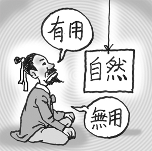 노자를 이어받은 장자(莊子)는 자연은 크고 작은것이 없으며 유용(有用) 무용(無用)이 있을수 없다고 했다. 유용, 무용이라는것은 오로지 인간의 입장에서 본 가치관일뿐 자연은 그대로 자연일뿐이라는 것이다. 농사를 중요시했던 농경민족은 자연을 지배대상이 아닌 화합의 대상으로 보았던 것이다. 인간의 진정한 생존 기술은 자연파괴가 아닌 자연과의 합리적 조화를 의미한다 할것이다.