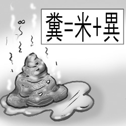 똥을 의미하는 한자말 분(糞)은 재미있다. 쌀(米)이 모양을 달리(異)한 것이다. 어찌 보면 똥은 곧 밥이라 할 수 있다. 이러한 이치를 어렸을 때 부터 자연스럽게 배우는 것이 무엇보다 중요하다. 밥이 생명이라면 똥 또한 생명이니까.
