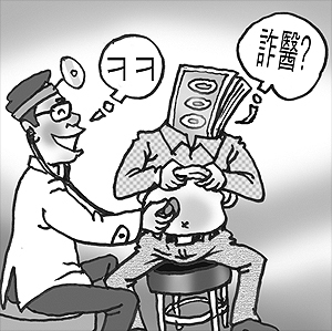 일곱 번째 사의(詐醫)는 돈이 있는 환자에게는 있지도 않은 병을 있다고 둘러대고 가난한 환자에게는 병이 없다고 속이며 많은 약을 써서 낫게하는의원이다. 끝으로 여덟 번째 살의(殺醫)는 앞서서 말한 혼의, 광의,망의, 사의의 못된것을 골고루 다 갗춘 의원을 말한다.