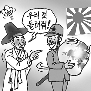 일본은 1904년부터 조선의 유물보존이라는 미명하에 '조선총독부 박물관' '경주 유물보존회'라는 전문 약탈 기구까지 만들어 우리 보물을 약탈하는데 혈안이 되었었다. 안중근 의사한테 암살당한 이토 히로부미 조선 초대 통감은 그의 재임 4년동안 1천점 이상의 청자를 모았다고 한다. 그 후 초대 총독 데라우치 마사타게는 약 1900점의 서예 작품과 400권의 서적과 2천여점 청자와 청동거울을 긁어모았다.