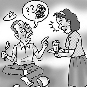 치매환자는 밥을 막 먹고 난 뒤에도 "왜 밥을 주지 않느냐"고 타박을 하기도 하고 밥을 갖다 주면 "아까 밥을 주고 또 주느냐"며 정색을 하기도 한다. 있지도 않은 일로 억장이 무너지는 소릴 해대기도 한다.