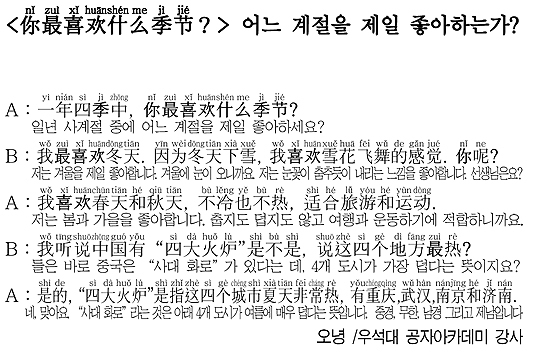 [회화 삼국지] 가가호호 중국어 - 어느 계절을 제일 좋아하는가?