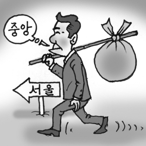 국회의원에 낙선한 뒤에도 고향에 사는 사람은 별로 없다. 한국인들은 유달리 중앙을 좋아한다. 오래전에 지방도시의 각종 간판을 조사한바 있는데 가장 선호하는 상호(商號)가 ‘중앙’이요 다음이‘서울’이었다고 한다. 예를 든다면 ‘중앙식당’ ‘중앙상사’ ’중앙 유치원’식이다. 서울권 인구가 1000만명 넘는 이유도 바로 한국인의 ‘중앙병’이 그 원인의 하나이다.