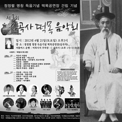 때 마침 그가 첫번째 독공에 들어갔던 심곡사에서 정정렬 명창의 득음 기념 공연장 개관을 기념해 제1회 떡목음악회가 열렸다. 비가 오는 가운데 열렸는데, 명창의 음악혼이 오랫동안 기려졌으면 한다.