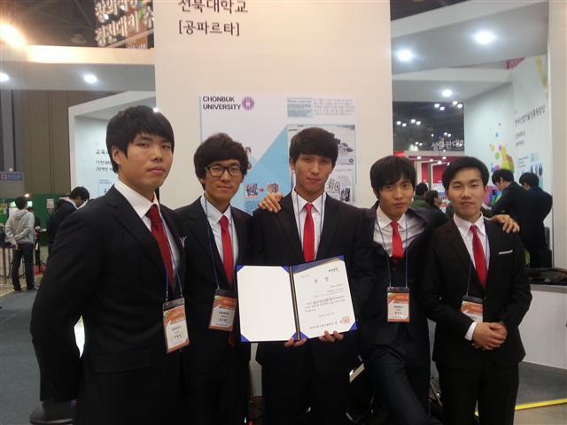 이들의 작품은 지난 10월 호남권 대학의 예선격으로 열린 '4D 공학콘서트'에서 대상을 수상했고, 서울에서 열린 전국 대회 본선에서도 상위 수상작 16개 팀에 선정됐다. 이어 지난달 일산 킨텍스에서 개최된 '2012 공학교육페스테벌'에서도 한국산업기술진흥원장상을 수상하는 기쁨을 맛봤다.
