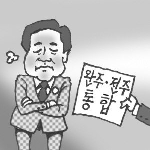 전주 완주가 통합되면 국회의원 선거구는 개편된다. 현재 3석인 전주 국회의원수가 4석으로 된다. 단지 잃을 것은 군수 자리다. 이 문제는 지역발전을 위해 치러야 할 최소한의 희생이다. 국회의원과 군수자리 보전때문에 통합이 안된다면 문제는 심각해질 수 있다. 최규성 국회의원이 계속해서"통합은 주민 스스로 자율적인 의사에 따라 결정돼야 한다"는 입장만 되풀이 하는 것은 잘못된 판단이다. 자신의 정치적 이해관계로 어정쩡한 입장을 견지하는게 지역구 국회의원이 취할 태도가 아니다. 지금이라도 맘 비우고 모든 걸 내려 놓는 자세로 통합문제를 풀어야 한다. 그간 도민들은 김제공항 건설때도 줄곧 반대해온 최의원에 곱지 않은 시선을 갖고 있다. 정치적 감각없이 자신 앞에다 큰감만 놓으려는 최의원의 무사안일한 태도에 몹시 비위가 상해 있다. 그래서 민주당이 걸림돌이 되고 있다. 백성일 주필