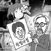 일본이 자랑스러워하는 거장 미야자키 하야오 감독이 최근 아베 신조 정권의 헌법개정 추진을 비판하고 나섰다. 자신이 운영하는 애니메이션 제작사 '스튜디오 지브리'가 발행하는 '열풍' 최근호에 아베 정권이 추진하고 있는 '헌법개정'과 관련한 글을 통해서다. "선거를 하면 득표율도 투표율도 낮은데, 정부가 혼잡한 틈을 악용해 즉흥적인 방법으로 헌법을 개정하는 것은 당치않은 일"이라고 밝힌 그는 "정권의 역사인식 부재와 정견의 부재에 질렸다"며 "생각이 부족한 인간이 헌법 같은 것을 건드리지 않는 것이 낫다"고 질타했다. 일본군 위안부 문제에 대해서도 일본 정부가 사죄·배상해야 한다는 입장을 명확하게 밝혔다.