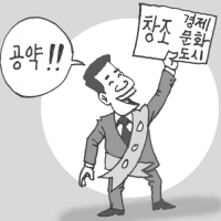 6월 4일, 지방선거를 다시 치른다. 정책공약을 보니 예외 없이 ‘창조’를 내세운 후보들이 적지 않다. 반가운 일이긴 한데 꼼꼼히 들여다보면 정책과 정책 사이의 모순이 크다. 구체적이지도 않고 실현가능성 없어 보이는 정책으로 인구를 늘린다거나 돈을 벌겠다는 허장성세 공약이 여전하다. 경제 패러다임이 새롭게 형성된 지금도 ‘창조’를 구색 맞추기 공약으로나 이용하는 현실은 안타깝다. 좋은 후보를 잘 가려 뽑아야 하는 이유다.