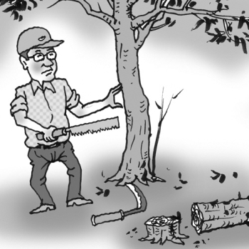매실나무 베어내며 가시에 찔린 상념들이 갈팡질팡, 아프게 서걱거린다. /이종민 객원논설위원