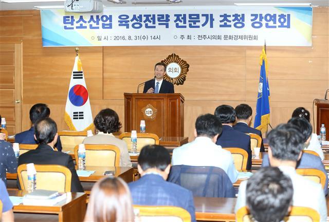 전주시의회 문화경제위원회는 지난 31일 시의원과 업계 종사자, 관계 공무원 등 70여 명이 참석한 가운데 ‘전주시 탄소산업 육성 전략 및 향후 전망’을 주제로 탄소산업 전문가 초청 강연회를 개최했다.