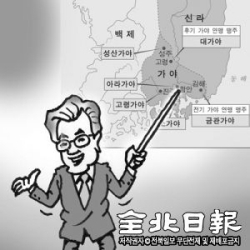 그런데도 가야사 복원 연구 사업을 앞서 진행했던 김해 고령 함안 등은 이미 오래전부터 가야 고분군의 세계문화유산 등재를 추진해왔다. 전북도와 장수군도 장수가야 유적의 세계문화유산 등재를 준비하고 있다. 같은 시대 같은 권역 역사 유적의 세계문화유산 등재를 따로 따로 추진하는 것은 아무래도 자연스럽지 않다. ‘영호남의 벽을 허무는 공동사업으로 가야사를 복원하자’는 문대통령의 바람과도 맞지 않은 일이다.