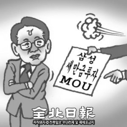그렇다고 하더라도 국무총리실과 삼성에 의해 도정이 농락당했다면 도백은 그 책임에서 자유로울 수 없다. 김 전 지사가 지금도 삼성의 진정성을 믿는다면 너무 순진하다. 책임을 면하기 위한 변명이라면 더 무책임하다. 삼성은 이미 새만금MOU를 백지화시켰다. 빅딜이 맞다고 하든지, 정부와 삼성에게 속았다고 하든지 둘 중 하나여야 지금의 퍼즐을 맞출 수 있다. ‘이제는 말할 수 있다’가 아직은 아닌가 보다.