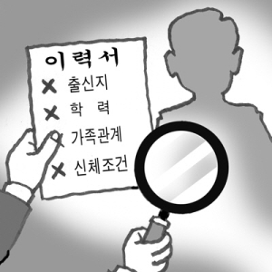 새 정부가 올 하반기부터 공무원과 공공기관의 신규 채용 때 ‘블라인드 채용’을 하기로 했다. 면접자가 지원자의 출신지역, 가족관계, 신체적 조건, 학력 등을 채용과정에서 인식할 수 없도록 해 불필요한 선입견을 없애기 위한 취지다. 무슨 이유 때문인지도 모른 채 서류 심사도 통과하지 못하고, 업무와 무관한 자격증 쌓아올리기 등으로 비용과 시간을 소비해야 하는 취준생들에게 환영을 받을 만하다. 그러나 공공부문의 경우 상대적으로 차별이 적었던 점을 고려할 때 민간 기업으로 확대되지 않는 한 그 효과는 반감될 수밖에 없다.