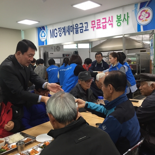 장수군 장계MG새마을금고(이사장 정훈모)가 7일 관내 노인들을 대상으로 무료급식 봉사활동을 펼쳐 지역사회에 귀감이 되고 있다.