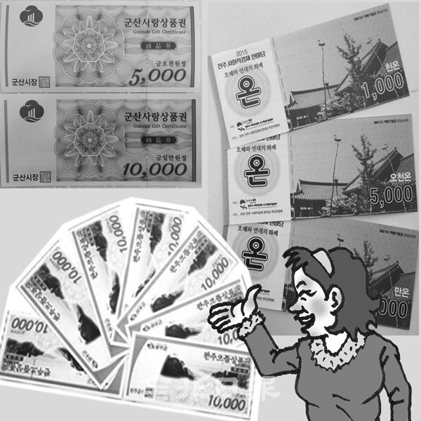 올 설을 맞아 온누리상품권과 군산사랑상품권 완주으뜸상품권 등 지역화폐를 10%씩 할인 판매한다. 벼랑 끝에 선 소상공인을 돕고 내고장을 살리면서 실속도 챙기는 지역상품권 구매에 함께 동참했으면 한다.