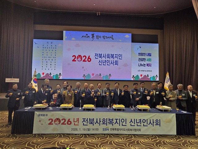 전북특별자치도사회복지협의회(회장 나춘균)는 19일 그랜드힐스턴 그랜드벨라에서 전북 사회복지인의 힘찬 출발과 도약을 다짐하는 ‘2026년 전북사회복지인 신년인사회’를 개최했다.