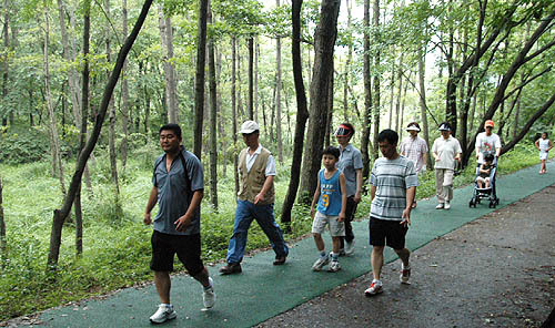 △ 월명공원의 환경논쟁- 모두 7.3km에 달하는 러버콘포장도로와 인공폭포, 주차장 등은 시민들의 웰빙과 산책을 위한 부산물로 만들어졌다. 이중 제대로 가동도 하지 못한채 ‘섰다 멈췄다’하는 개발의 그늘이라 할 수 있는 곳이 인공폭포이다. 이같은 개발적인 관점속에도 월명공원의 생태적인 중요성을 일깨워주고 있는 것이 청사조의 자생소식이다.