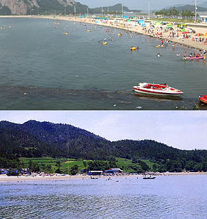 코발트 빛의 물결이 넘실거리는 명사십리를 비롯 선유낙조, 망주폭포, 삼도귀범, 장자어화, 월명단풍 등 8경을 만끽할 수 있는 선유도(사진 위)와 홍길동이 마지막 지상 낙원터로 삼았다는 위도의 해수욕장 전경 (desk@jjan.kr)