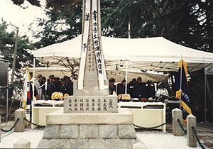 군산 월명공원의 순직의용소방대 위령탑에서 위령제를 지내는 모습. (desk@jjan.kr)