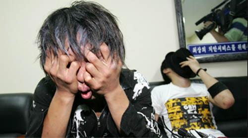 서울 영등포 경찰서에서 조사를 받고 있는 펑크밴드 카우치의 멤버들이 곤혹스런 표정을 짓고 있다. (desk@jjan.kr)