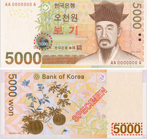 새 지폐는 한국적 이미지를 강화했고 홀로그램 등 첨단 위조방지장치를 무려 20여개나 적용했다.