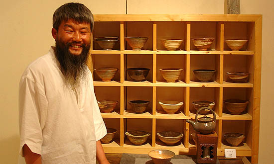 대학 시절 조형작업을 주로 했던 그는 전통도예와 장작가마 작품의 현대화를 목표로 생활자기로 방향을 바꿨다. 이번 전시는 가루차를 마시기 위한 찻사발이 중심이다. 그는 “차그릇만해도 제대로 보여줄 수 없다”며 백자 윗손잡이, 옆손잡이, 뒷손잡이 다관과 덤벙, 반덤벙 분청 다관, 잎차용 다기세트, 무유열탕기 다기세트 등 100여가지 종류의 다기를 내놓았다.