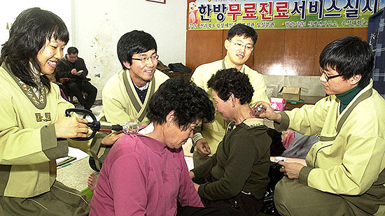 40여명으로 구성된 우석대 한의과대학 동아리 ‘무침세상’(침이 필요 없는 세상, 즉 아픈 사람이 없는 세상을 뜻한다)이 의료서비스에서 소외된 농촌 지역에 봉사활동에 나선 것은 지난 1996년.
