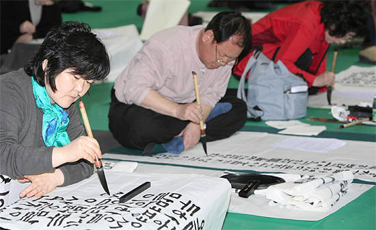 지난 7일 전주실내체육관에서 열린 현장 휘호대회에는 예심을 거친 210명이 참가해 한문·한글·문인화 3개 부문에서 기량을 겨뤘다. 대회결과 최우수상은 신동환(한문부문·전북) 함윤희(한글부문·전북)씨가, 우수상은 안상수(한문·경기) 양위뢰(한문·서울) 한현숙(한글·부산) 김월식(문인화·충남)씨가 각각 차지했다. 특선은 박상용씨 등 38명이, 입선은 강성은씨 등 102명이 받았다.