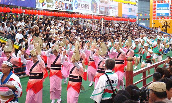 작년 관람객만 126만명. 아와오도리 실행위원회는 “올해는 첫날에만 41만명이 다녀갔다”며 “축제 기간 총 130만명이 방문한 것으로 추산된다”고 밝혔다. ‘렌’(連, 연맹)이라는 그룹 단위로 공연하는 아와오도리는 출연단체만 960팀, 그 숫자는 10만명 정도다. 출연자도, 관람객도, 어마어마한 숫자다.