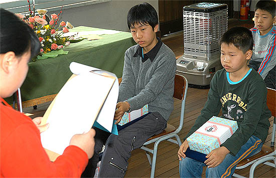학부모와 마을주민 20여명이 참석한 가운데 오전 10시부터 시작된 58회 졸업식은 폐교에 대한 아쉬움 때문인지 다소 숙연한 분위기 속에서 진행됐다. 졸업생인 이준영군(13)과 김솔빈군(13)이 교대로 학교장상과 6년개근상, 학교운영위원회위원장상, 국회의원상, 군산시교원연합회장상, 군산시장상, 군산시의회의장상, 옥구읍장상을 받을 때에는 ‘학생없는 시골학교의 씁쓸함’이 그대로 묻어났다.