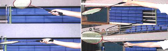 ① 스핀 헤어핀(Spin-hairpin)= 셔틀콕의 코르크 부분을 순간적으로 끊어 쳐서 스핀을 걸어 셔틀콕이 불규칙하게 움직이게 하는 기술이다. 상대가 리턴하기가 가장 어렵고 득점으로 연결 될 때가 많다.