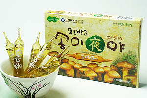 항암은 물론 혈관질환 등에 탁월한 효과가 있는 것으로 알려진 자연산 송이의 추출액을 음용이 쉽도록 만든 '송이야' 앰플이 국내 최초로 대중 상품으로 출시돼 눈길을 끌고 있다.