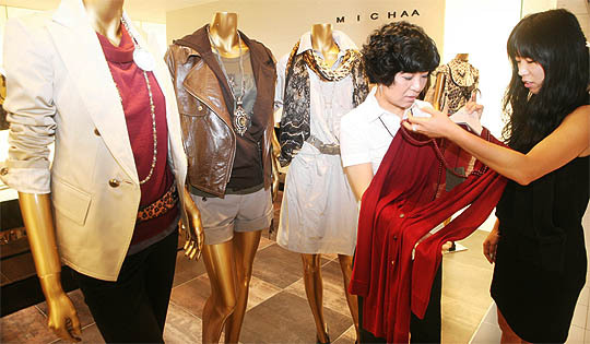 전주 롯데백화점의 한 의류매장에서 가을 신상품을 고르고 있는 여성 고객. (desk@jjan.kr)