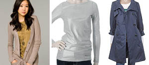 가을 하면 떠오르는 대표적인 옷 트렌치코트. 어머니들 사이에서 일명 '바바리'로 불리는 트렌치코트는 그 명성만큼 가을에 꼭 필요한 옷이기도 하다. 거의 모든 브랜드에서 가을이면 내 놓은 아이템으로 획일적인 모양에서 벗어나 다양한 장식이 첨가된 디자인들이 많다. 갈색이나 검정색이 기본으로 젊은층은 노란색, 빨간색, 핑크색 등을 구입하면 화사한 분위기를 연출 할 수 있다. 대부분이 20만원을 넘는 고가의 옷이기도 하지만 카디건과 마찬가지로 유행을 많이 타지 않으니 오래 입을 수 있다. 백화점에서 운영하는 인터넷 쇼핑몰을 이용하면 더욱 저렴하게 구입이 가능하다.