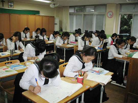 30여명 남짓한 학생들은 저마다의 자리에서 수학문제집과 씨름을 하고 있다. 간간히 담당 교사가 학생들에게 다가가 문제 풀이 요령을 설명해 줬다. 빨간 색연필로 사선을 그은 문제에 시선을 집중한다. 왜 틀렸을까? 학생들은 모두 틀린 문제를 둘러싸고 작은 전쟁을 벌이고 있다. 남은 기간이 많지 않기 때문에 이제 새로운 것을 알아가기보다는 틀린 문제를 체크하는 것이 더 중요하다.