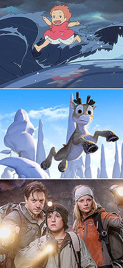▲ 벼랑 위의 포뇨 (애니메이션/ 100분/ 전체 관람가)제목만 듣고 보면 프랑스 예술 영화 쯤으로 보이는 벼랑 위의 포뇨는 알고 보면 애니메이션 장르에 그것도 미야자키 하야오가 만들어낸 현대판 인어공주 이야기다. 바다 속에 사는 물고기 소녀 포뇨는 일상이 따분하고 심심할 뿐. 아빠 몰래 외출한 어느 날, 바다를 청소하던 유리병 속에 갇히게 되고 그 과정에서 인간 소년 소스케와 친구가 된다.